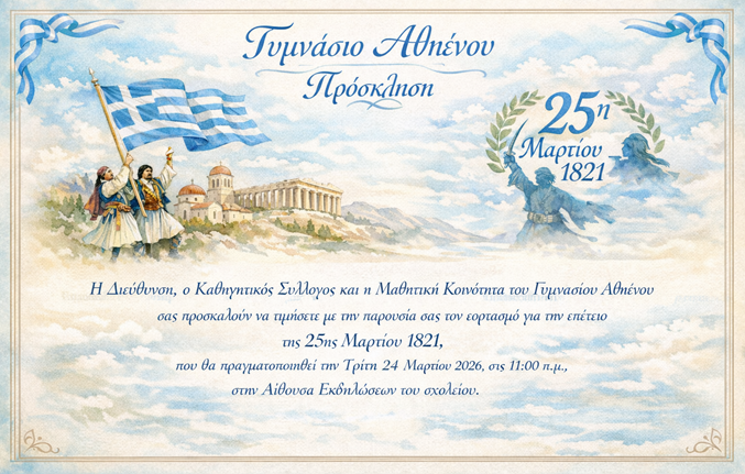 - ΠΡΟΣΚΛΗΣΗ ΕΟΡΤΑΣΜΟΥ ΤΗΣ ΕΠΕΤΕΙΟΥ 25ΗΣ ΜΑΡΤΙΟΥ 1821
