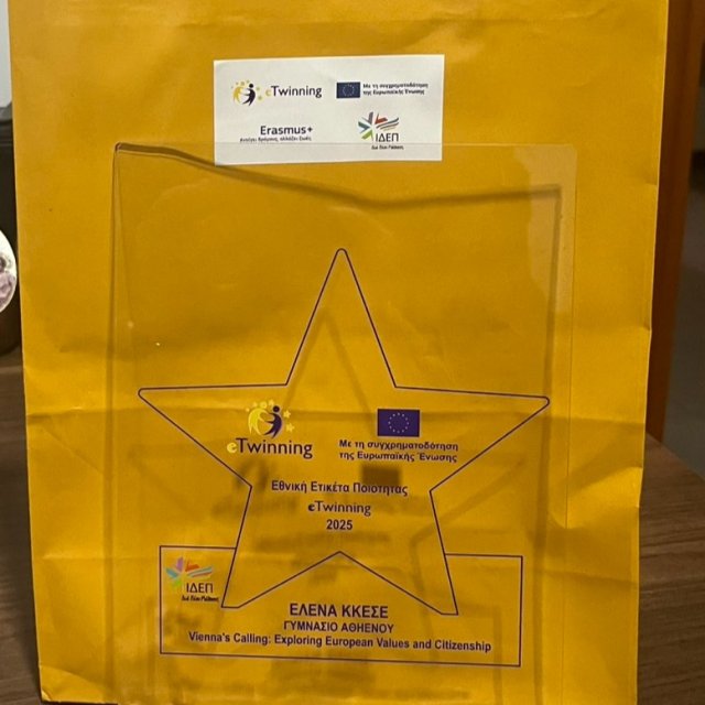 Με ιδιαίτερη χαρά και υπερηφάνεια, το Γυμνάσιο Αθηένου ανακοινώνει τη διάκριση του έργου «Vienna’s Calling: Exploring European Values and Citizenship» με την Εθνική Ετικέτα Ποιότητας eTwinning. Το έργο υλοποιήθηκε με συντονίστρια την εκπαιδευτικό Δρ Έλενα Κκεσέ και ξεχώρισε για την ποιότητα, τη δημιουργικότητα και τον ευρωπαϊκό του προσανατολισμό.