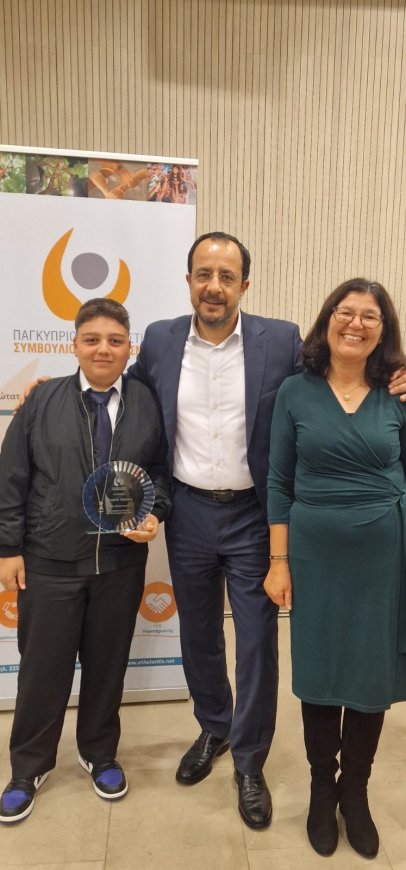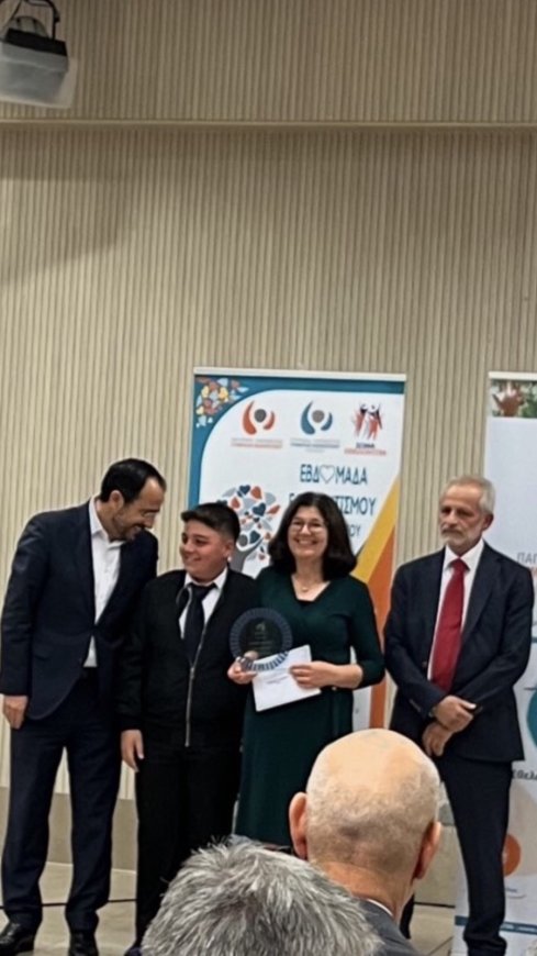 Το Γυμνάσιο Αθηένου εκπροσωπήθηκε από την κ. Άννα Χριστοδούλου, Θεολόγο, η οποία εργάστηκε άοκνα κατά την περσινή Σχολική Χρονιά 2023-2024 για τον Εθελοντισμό γενικότερα στο Σχολείο μας και από τον πρόεδρο του Κεντρικού Μαθητικού Συμβουλίου, Λοΐζο Χαράκτα του τμήματος Γ2. Το Σχολείο μας διακρίθηκε για τρίτη συνεχή χρονιά και απέσπασε το 3ο βραβείο στο πλαίσιο του Διαγωνισμού Νεολαία και Εθελοντισμός 2023-2024, που προκηρύσσει κάθε χρόνο το Παγκύπριο Συντονιστικό Συμβούλιο Εθελοντισμού.