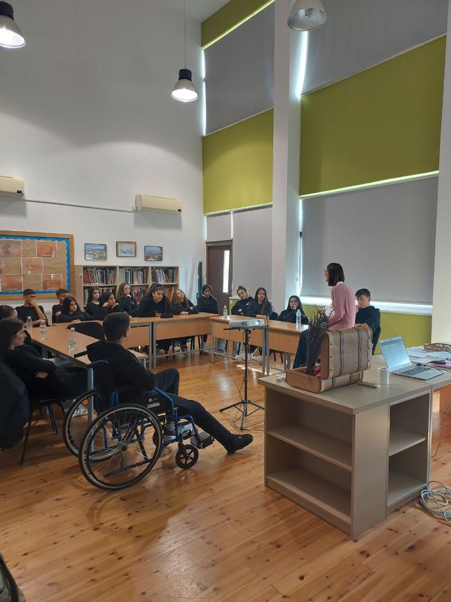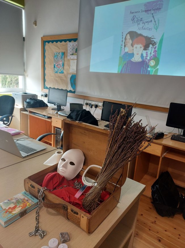 Την Πέμπτη 5/12/24 είχαμε την χαρά να φιλοξενήσουμε στη βιβλιοθήκη του σχολείου μας τη συγγραφέα Αναστασία Ξενοφώντος Γαϊτάνου η οποία μας ξενάγησε στον κόσμο του εφηβικού μυθιστορήματός της "Φιλιά με άρωμα λεβάντας", το οποίο θα επεξεργαστούμε ως λογοτεχνικό βιβλίο στο πλαίσιο του μαθήματος των Νέων Ελληνικών. Το τμήμα Γ1 συζήτησε με τη συγγραφέα και μέσα από διάφορα βιωματικά παιχνίδια ανακάλυψαν τα βασικά χαρακτηριστικά μιας αληθινής φιλίας! Ευχαριστούμε τη συγγραφέα- εκπαιδευτικό για το όμορφο ταξίδι στον κόσμο του βιβλίου!