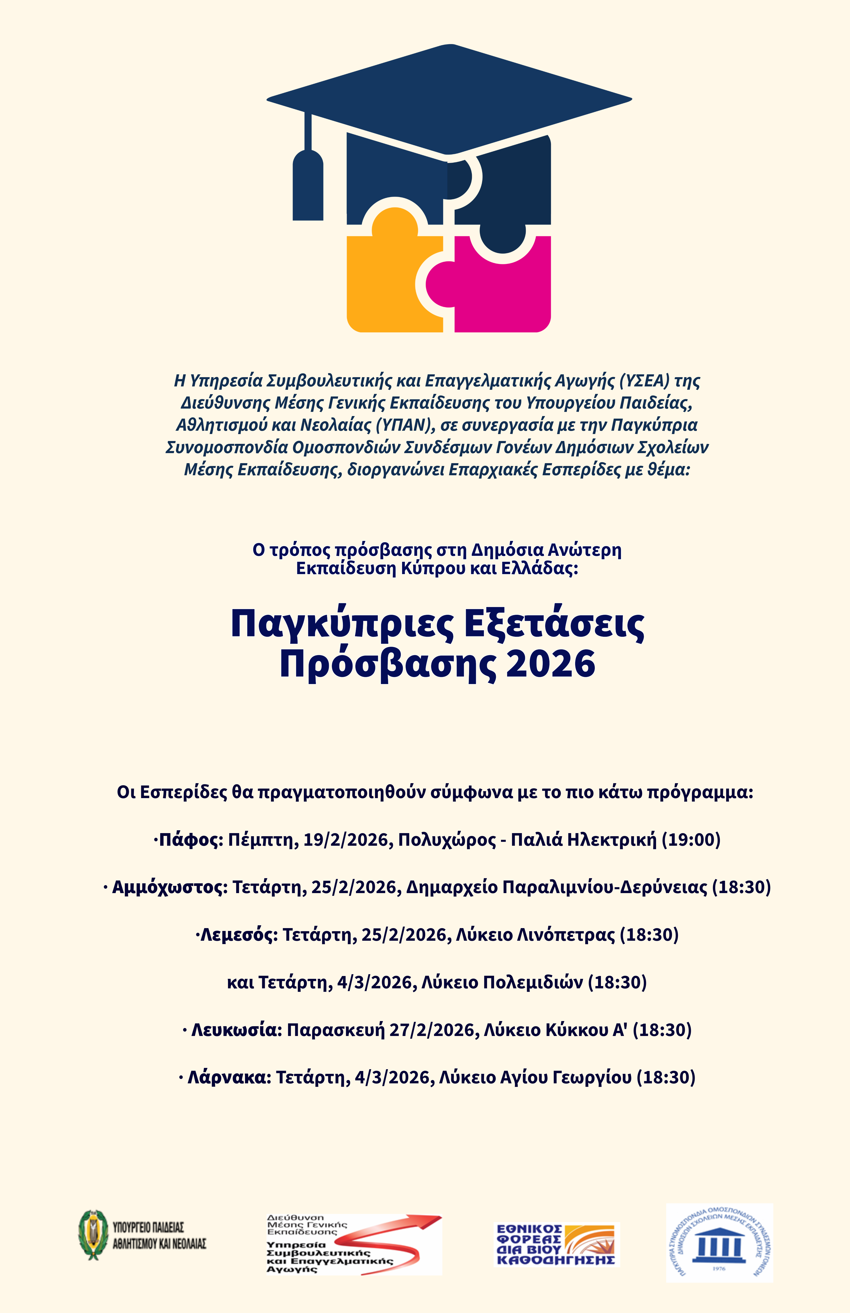 Επαρχιακές Εσπερίδες με θέμα: Ο τρόπος πρόσβασης στη Δημόσια Ανώτερη Εκπαίδευση Κύπρου και Ελλάδας