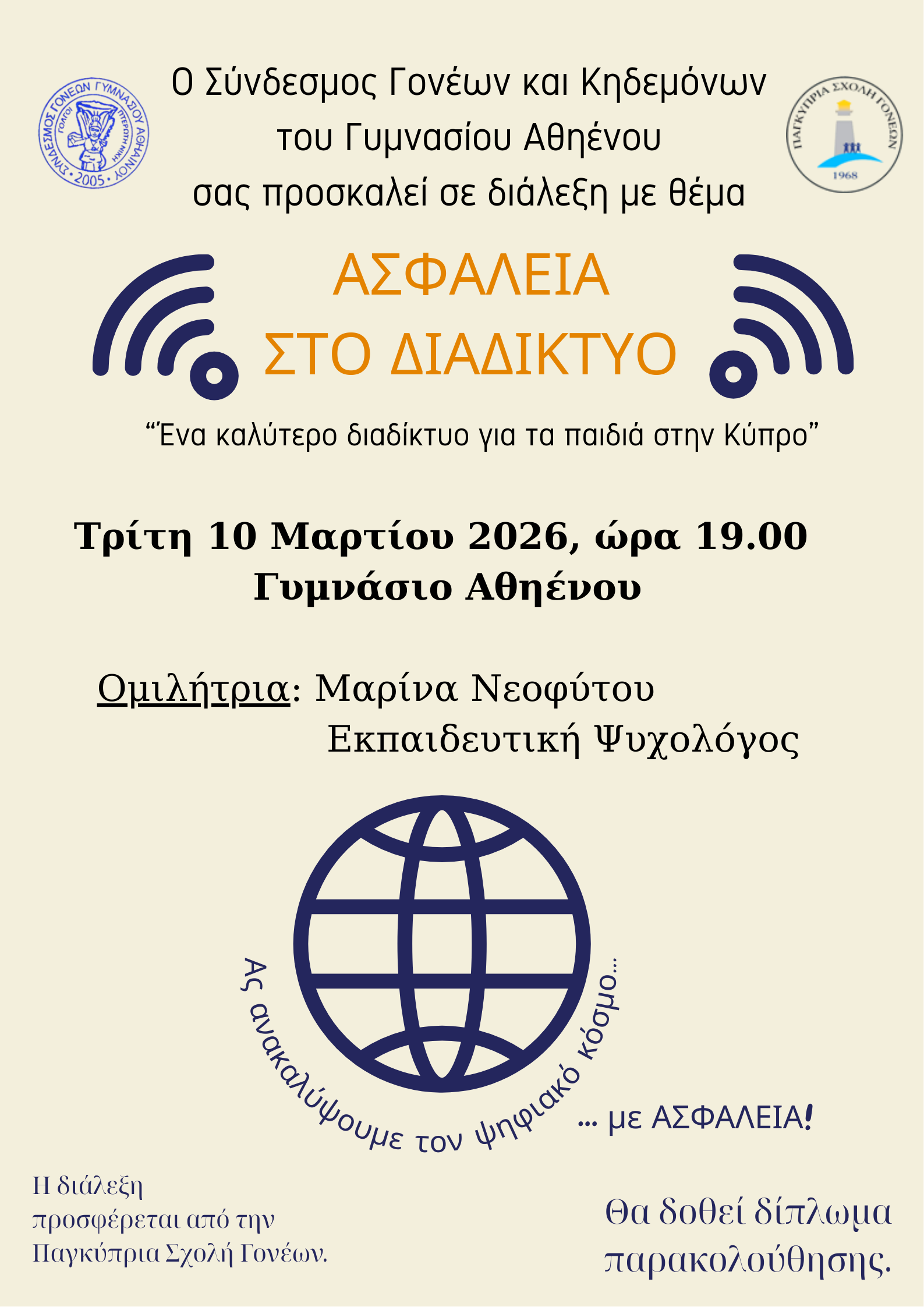Πρόσκληση για τη διάλεξη με θέμα "Ασφάλεια στο διαδίκτυο"
